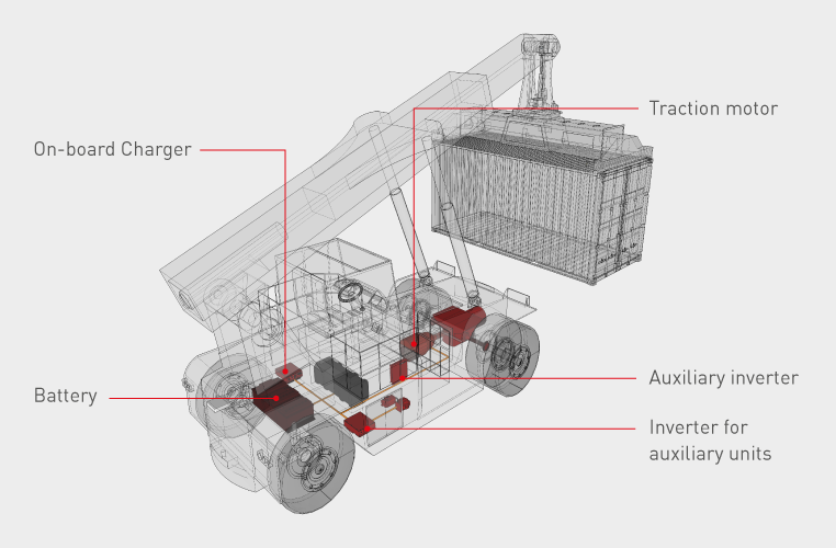 Electric drive technology has the advantage over hydraulic systems of higher energy efficiency and better regulation. It thus meets the demands of port operators to always use environmentally friendly systems with significantly lower CO2 emissions and reduced fuel consumption. Energy is also generated when lowering the hoist and braking the vehicle. With the help of an energy storage system, this energy can be efficiently reused, either for vehicle acceleration or for lifting.